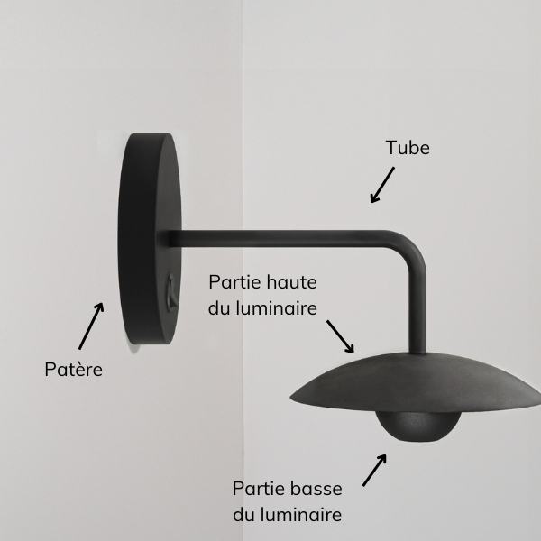 Tube : Le tube permet de raccorder le corps du luminaire à la patère. Attention avec cette configuration, le corps du luminaire n'est pas orientable.