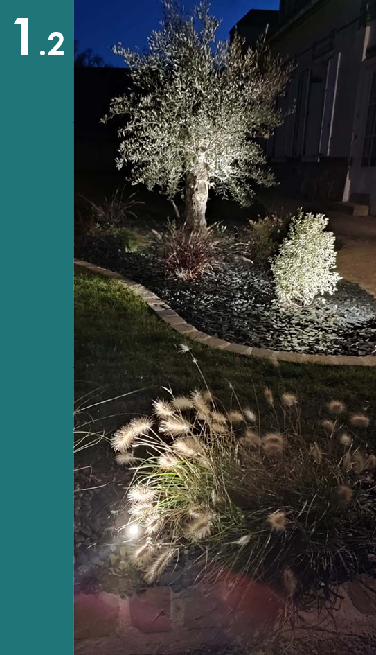 Pour mettre en lumière ce type de massifs, la meilleure solution consiste à prendre du recul afin d’éclairer le massif avec un spot sur piquet qui va se trouver de 3 à 5 mètres de la zone que vous souhaitez éclairer.